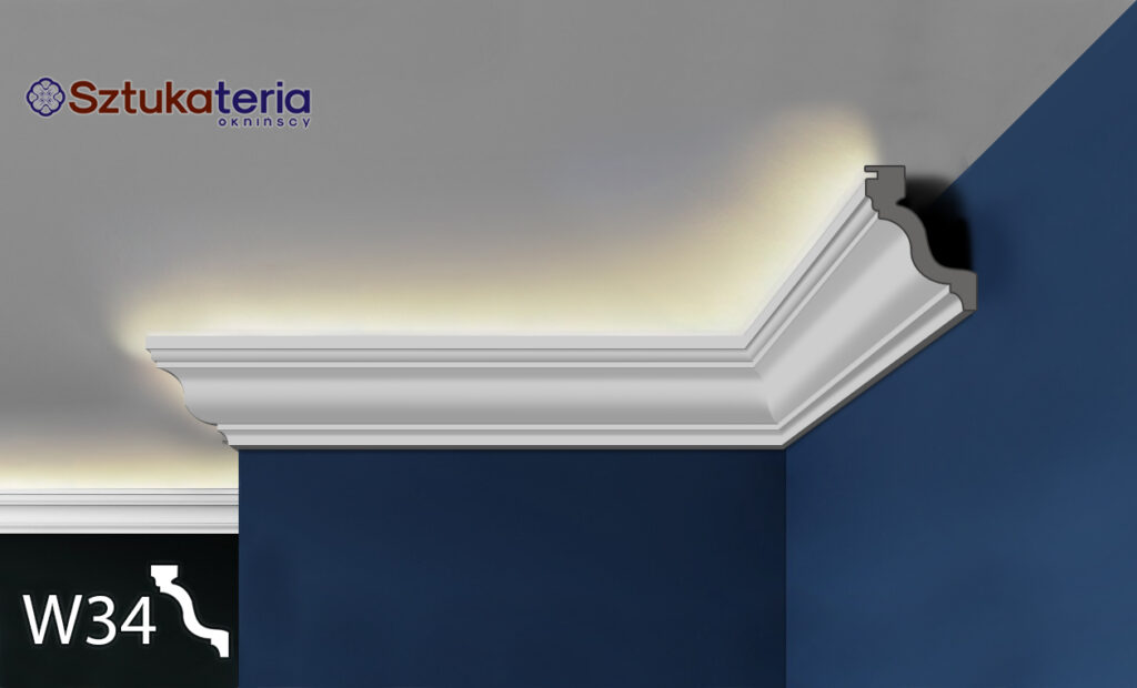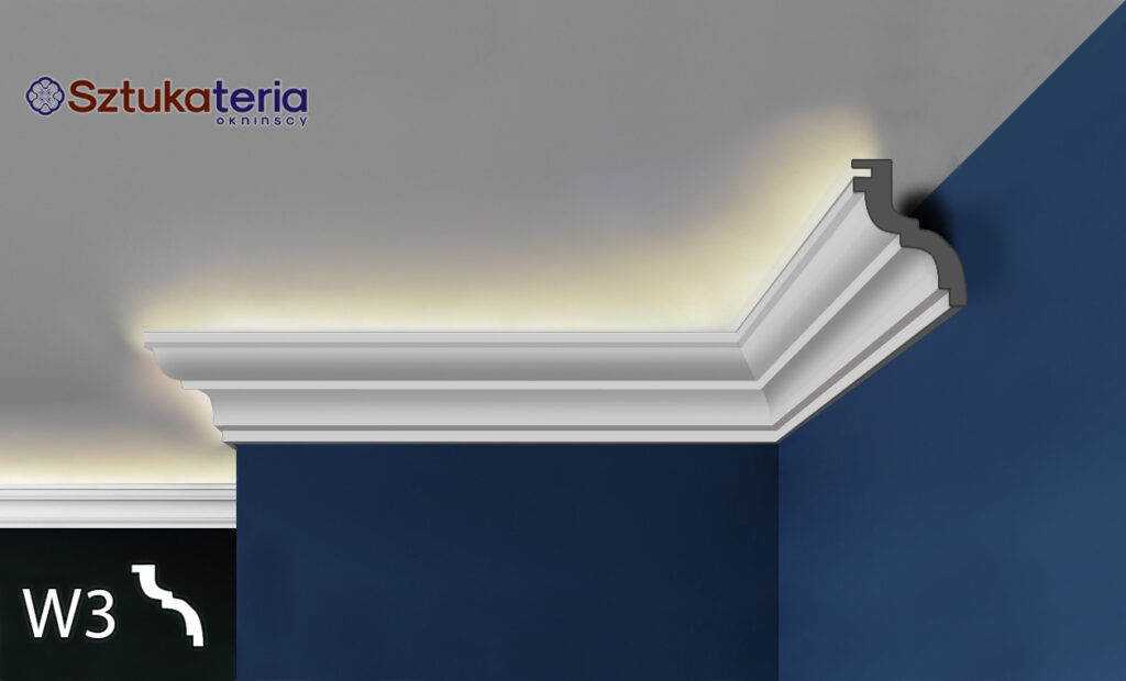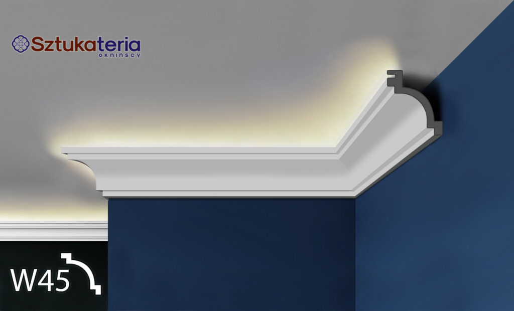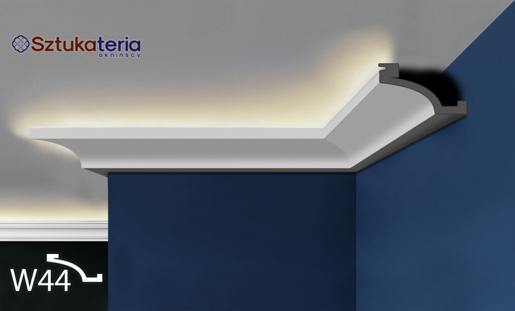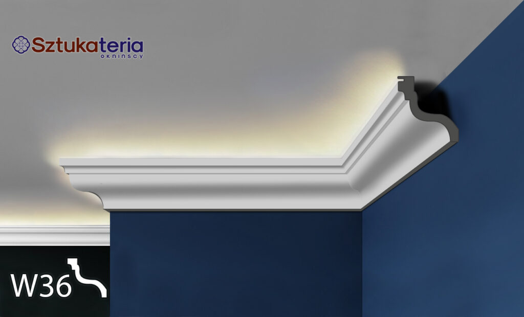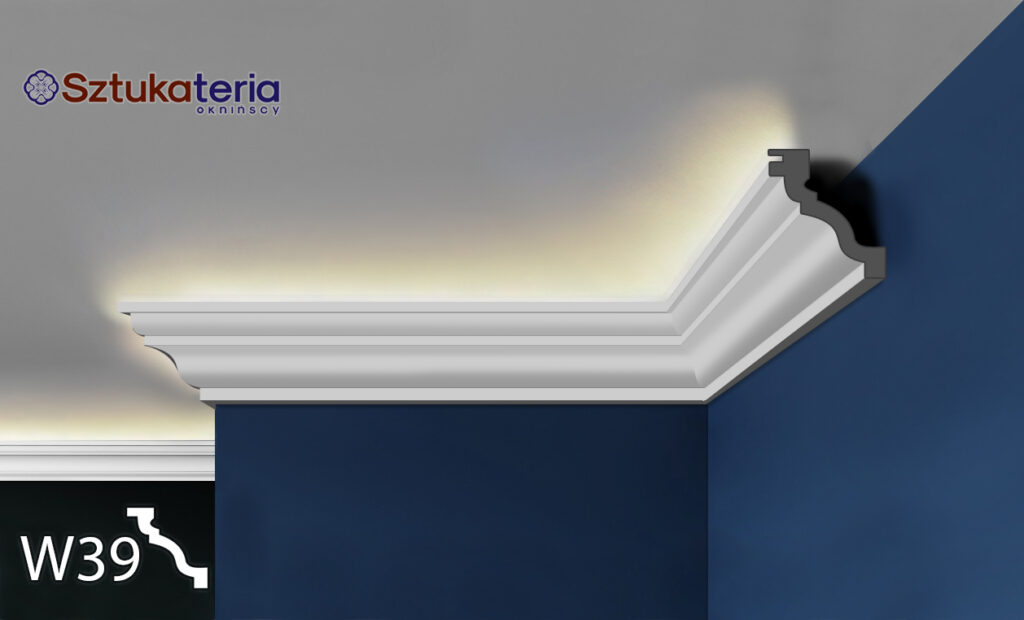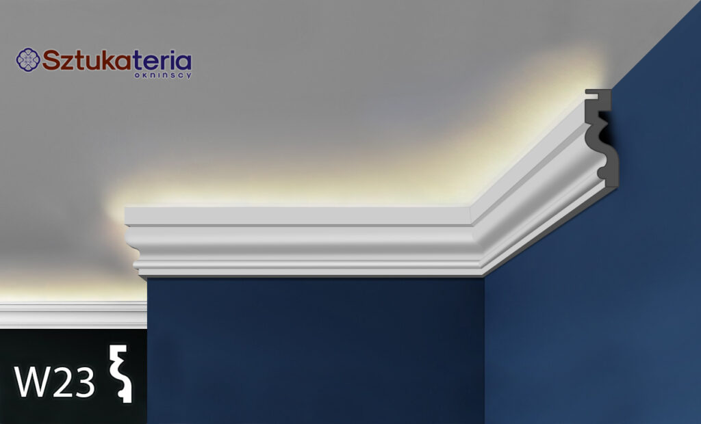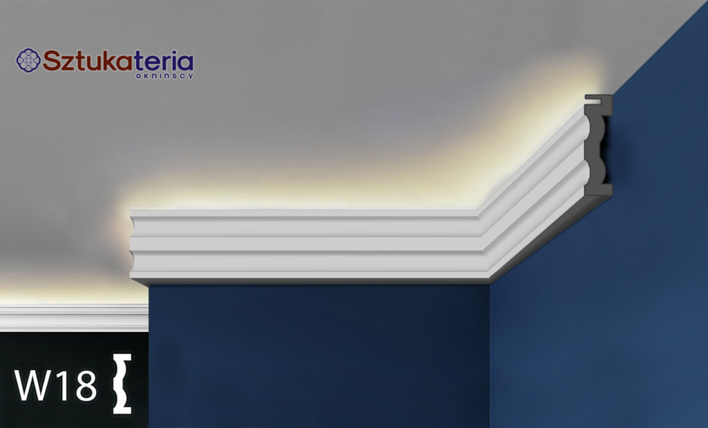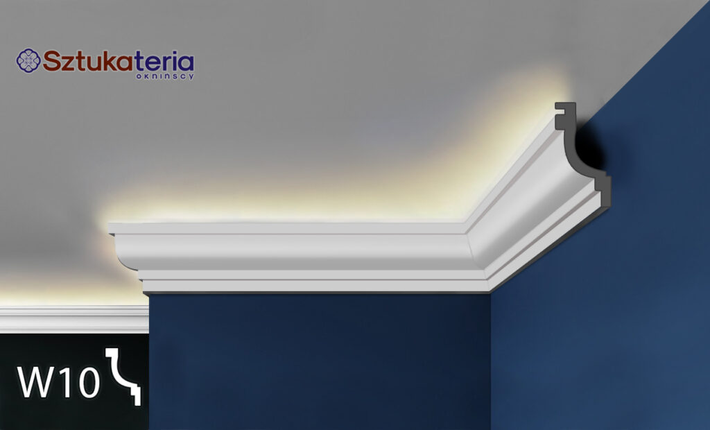 Podsufitowe listwy LED tworzą niepowtarzalny efekt, który można zmieniać pod kątem kolorystyki i natężenia światła. W naszej firmie produkującej sztukaterię i kolumny znajdziesz szeroki wybór wzorów – zarówno w kategorii listew karniszowych, jak i podsufitowych.